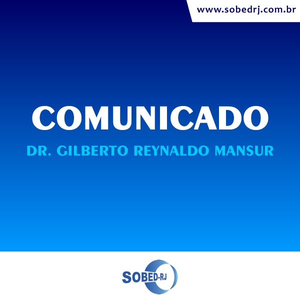 A SOBED-RJ no seu papel em defesa da ética profissional vêm a público comunicar que o associado e ex-presidente da SOBED-RJ, Gilberto Reynaldo Mansur, não foi ou é portador do Covid-19, conforme comprovado através de exames realizados.