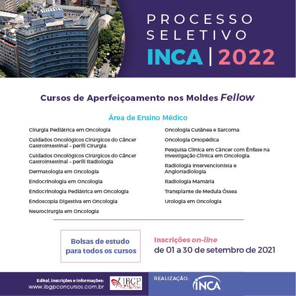 O INCA está com inscrições abertas, até o dia 30 de setembro, para quem tiver interesse em realizar cursos de aperfeiçoamento nos moldes Fellow.