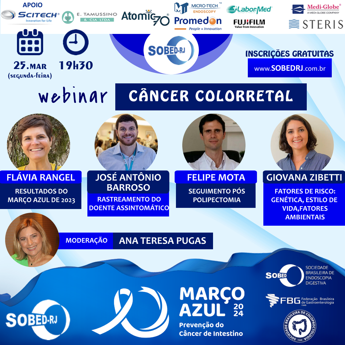 A moderação será da Dra. Ana Teresa Pugas, presidente da Associação de Gastroenterologia do Rio de Janeiro.