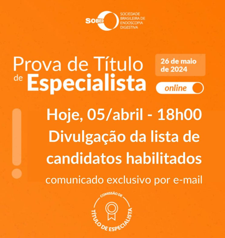 A SOBED enviou no dia 5, sexta-feira, e-mail para os candidatos habilitados para Prova de Título de Especialista online da SOBED, que será realizada no dia 26 de maio, de forma online.