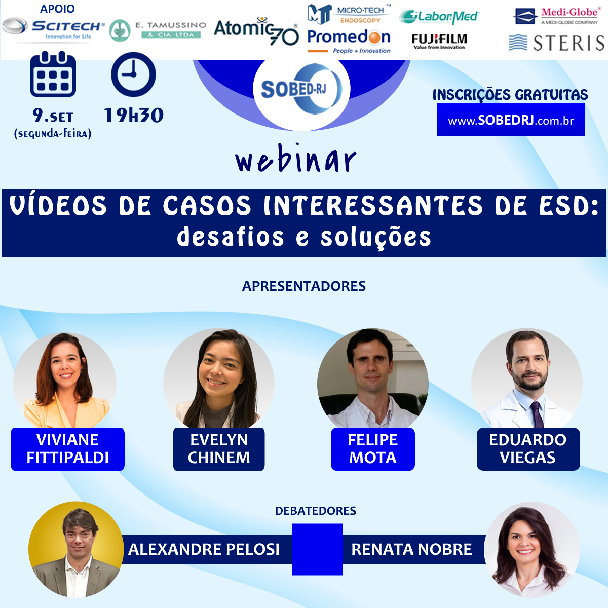 A SOBED-RJ realiza nesta segunda-feira, dia 9, às 19h30, sua reunião científica de setembro que terá como tema Apresentação e debate de casos interessantes de ESD – desafios e soluções