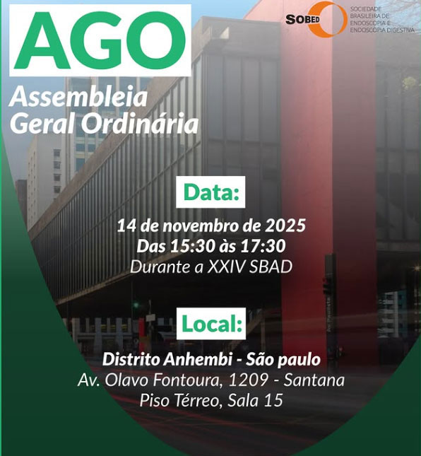 A SOBED convoca seus associados para Assembleia Geral Ordinária que será realizada de forma presencial no dia 14 de novembro, a partir das 15h30, durante a SBAD 2025, em São Paulo.
