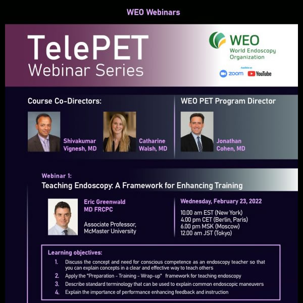 A Organização Mundial de Endoscopia organiza webinar no dia 23, quarta-feira, às 12h, abordando Ensino de Endoscopia: Uma Estrutura para Melhorar o Treinamento.