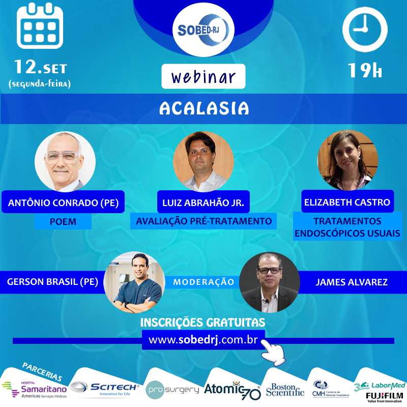 A reunião científica de setembro da SOBED-RJ será realizada de forma online no dia 12, segunda-feira, a partir das 19h e abordará Acalasia.